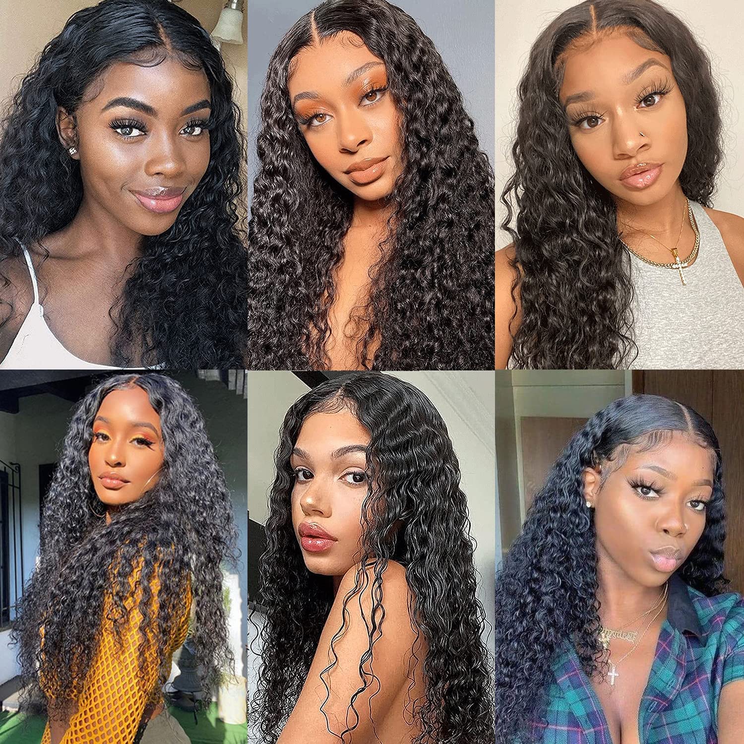 Amazon Com Water Wave Lace Front Wigs Human Hair Wigs For Black Women Wet And Wavy Lace Front Wigs Human Hair Pre Plucked With Baby Hair 180 Density Curly Tramsparent Lace Front